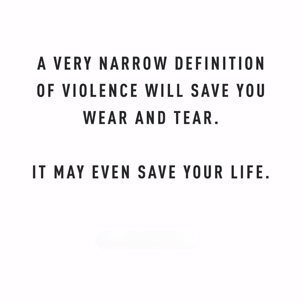 A narrow definition of violence will save you wear and tear. It may even save your life.
