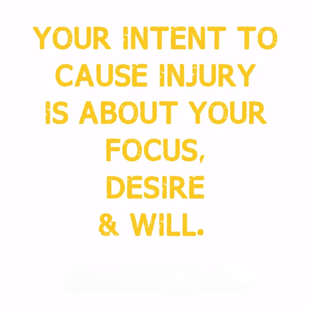 Intent in self protection and violence is about wanting injury to the exclusion of all else. It is motivation that lies beyond emotion.